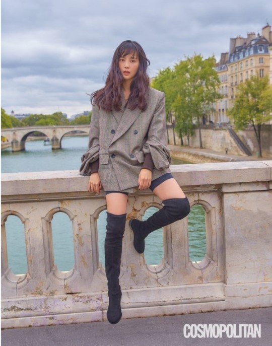 韩国女艺人尹胜雅不久前飞往法国,在巴黎街头拍摄了一组时装照。